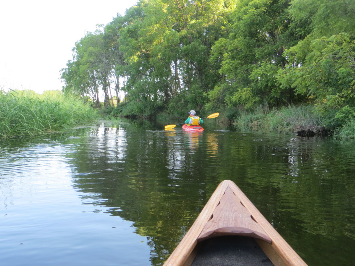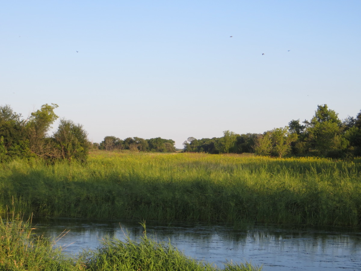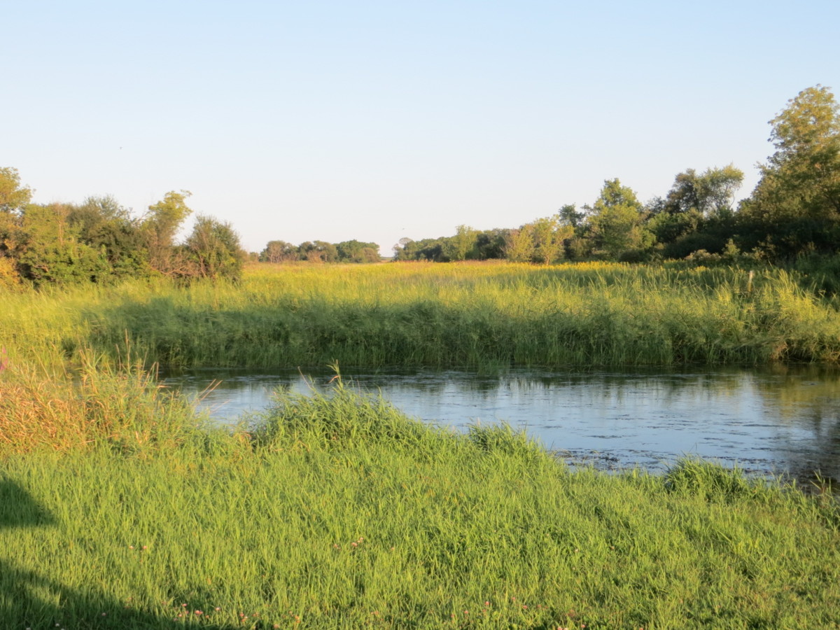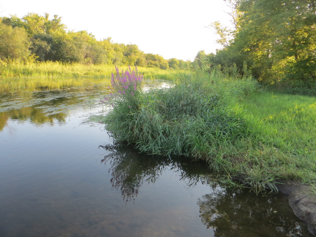 Take-out: 6:20 pm at “pipeline” off S. O’Riley Rd, just downstream from the RR bridge. Small drop off at landing but not a major problem for the canoe or kayak. It was not muddy, and we didn’t have to step into the water to get out. There is a nice gravel parking lot. No facilities.