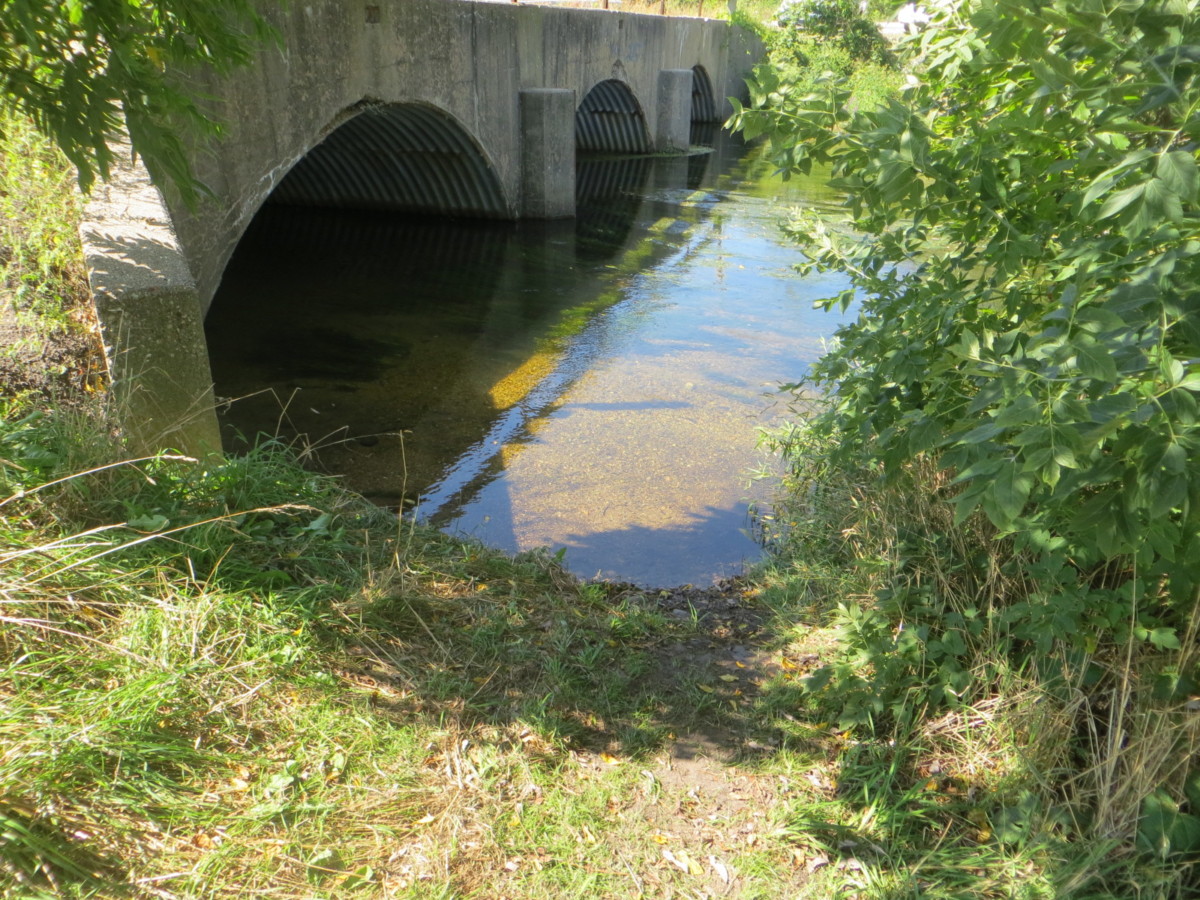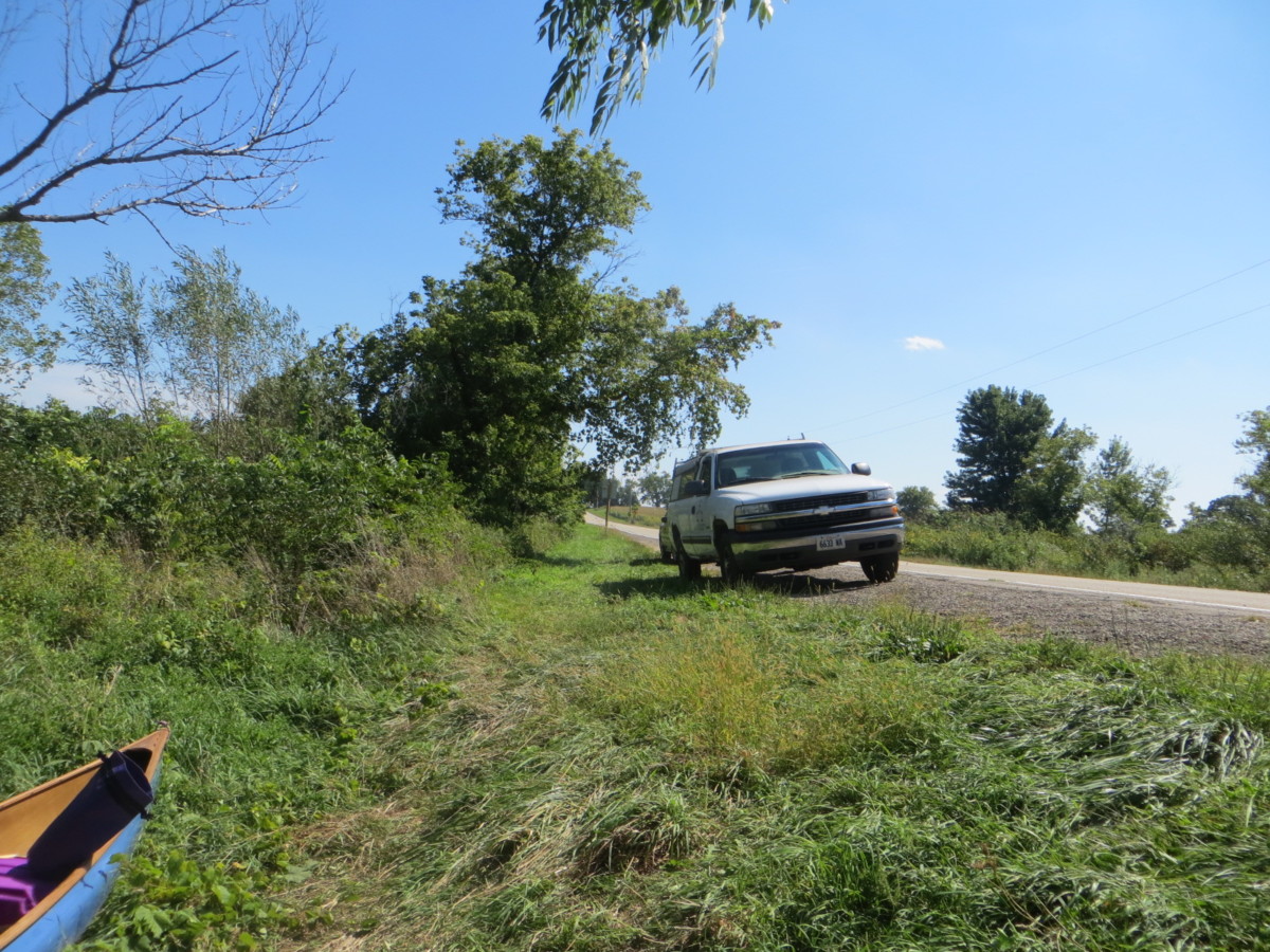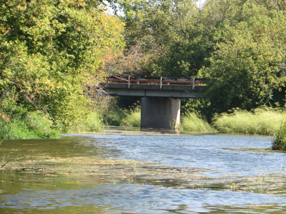 The shuttle from Highway C bridge to the takeout on O’Riley Rd is about 2.9 miles. Go southeast on Highway C, right on Clowes Rd, right at the T onto Creek Rd, left at O’Riley Rd to the takeout at the “pipeline” just after crossing the RR tracks. Turn left into the parking lot where there is room for several cars.)