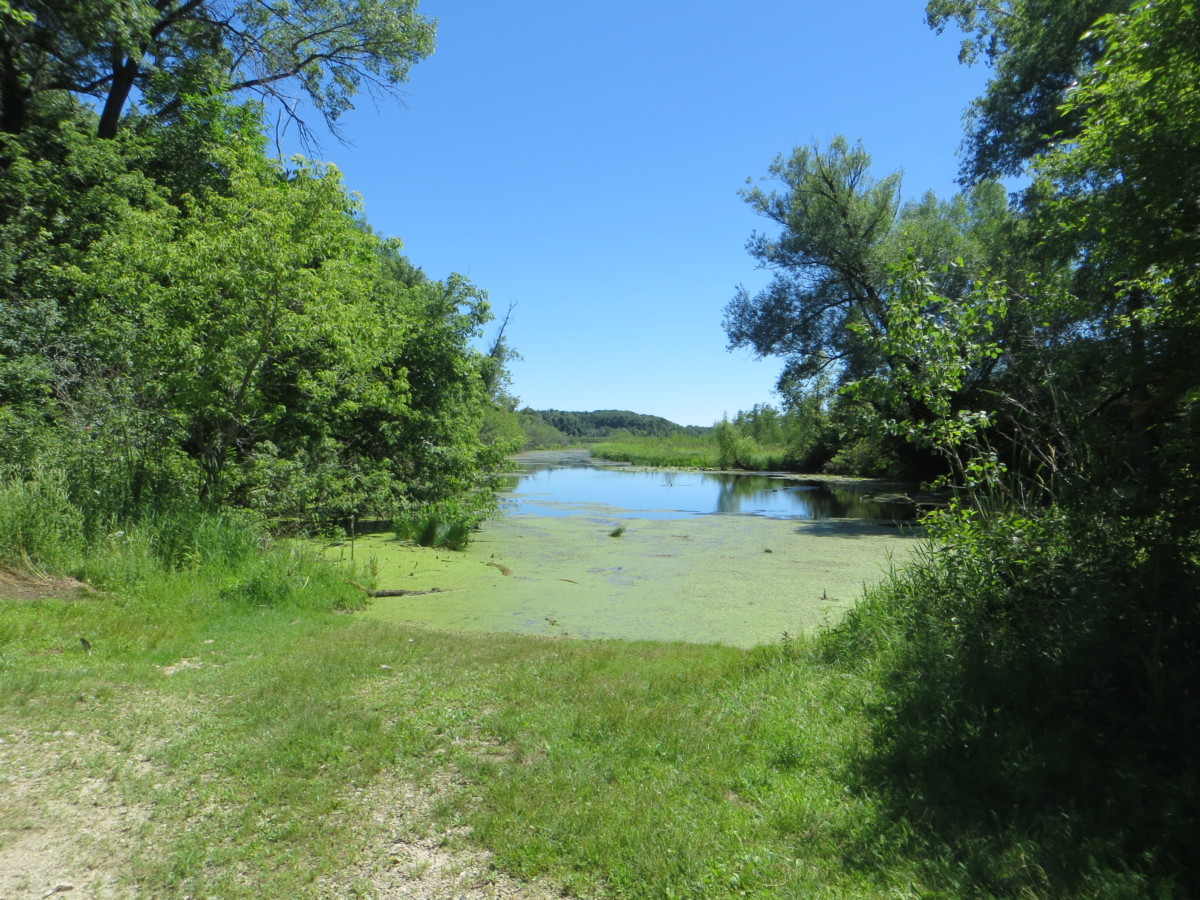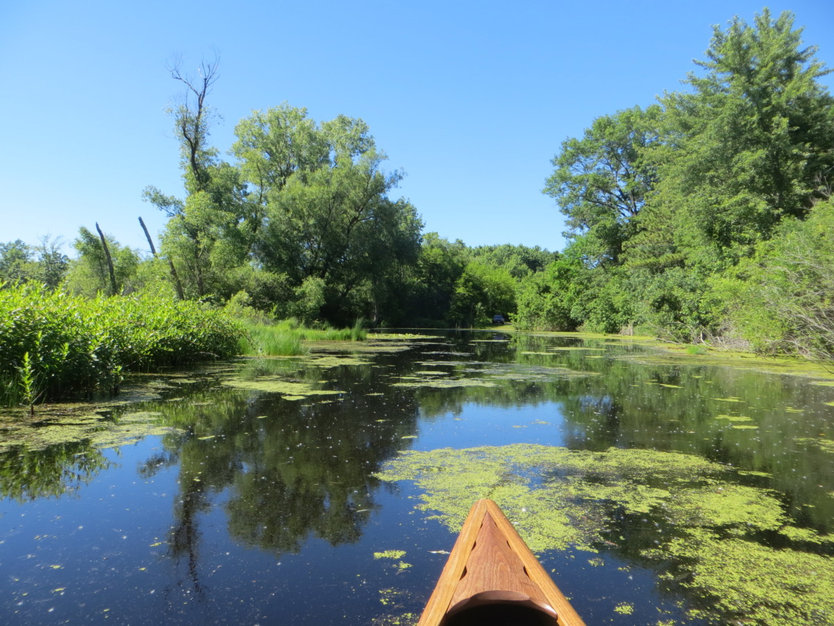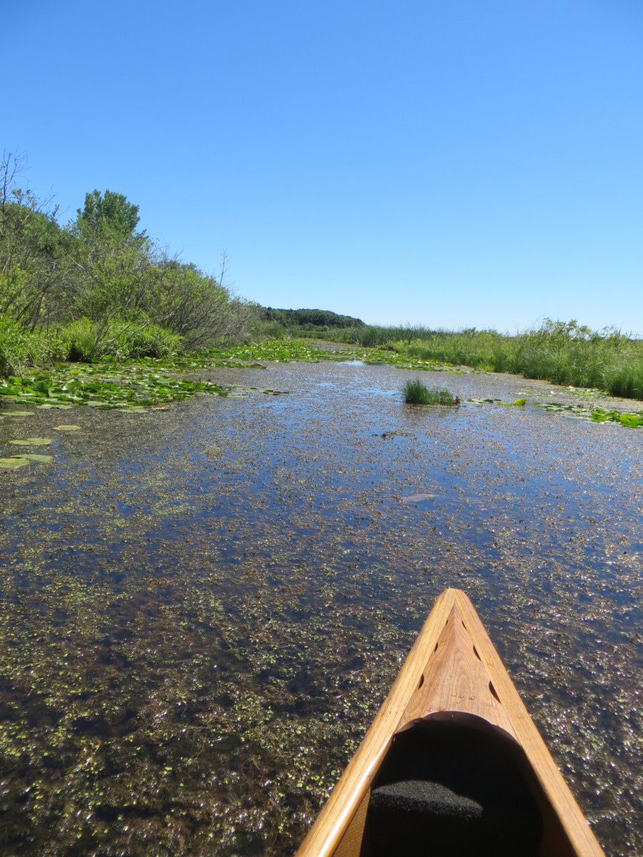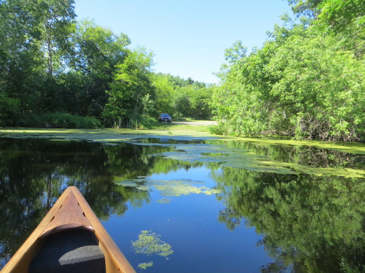 This lake is probably quite pretty, but we really couldn’t see much of the water surface. We got to it too late in the season – it was just packed with vegetation. The canoe did ok in this thick plant material, but kayak paddles would probably get tangled due to the different pattern of paddle strokes. We heard about Red Cedar Lake in one of the paddling books, and it sounded idyllic; we guess they must have gone in the spring. We probably will not try again this year.