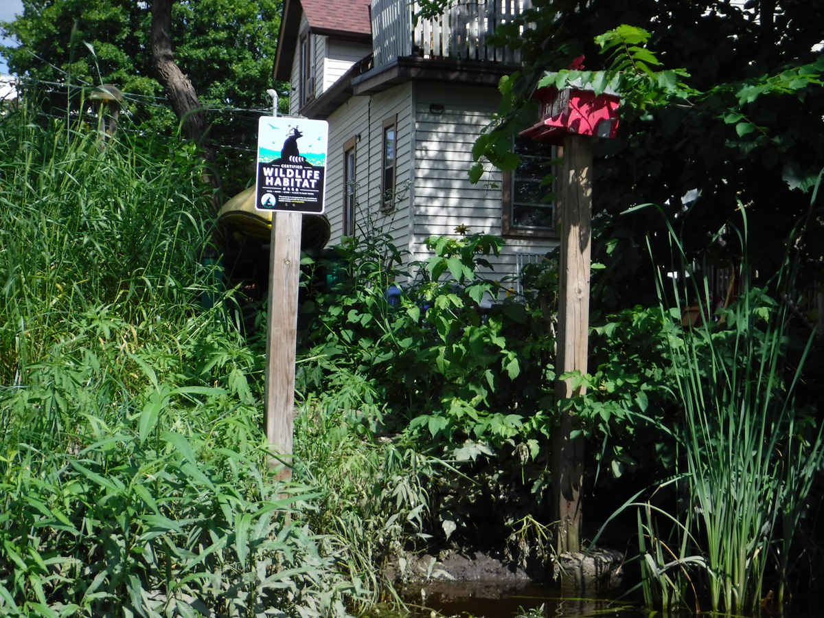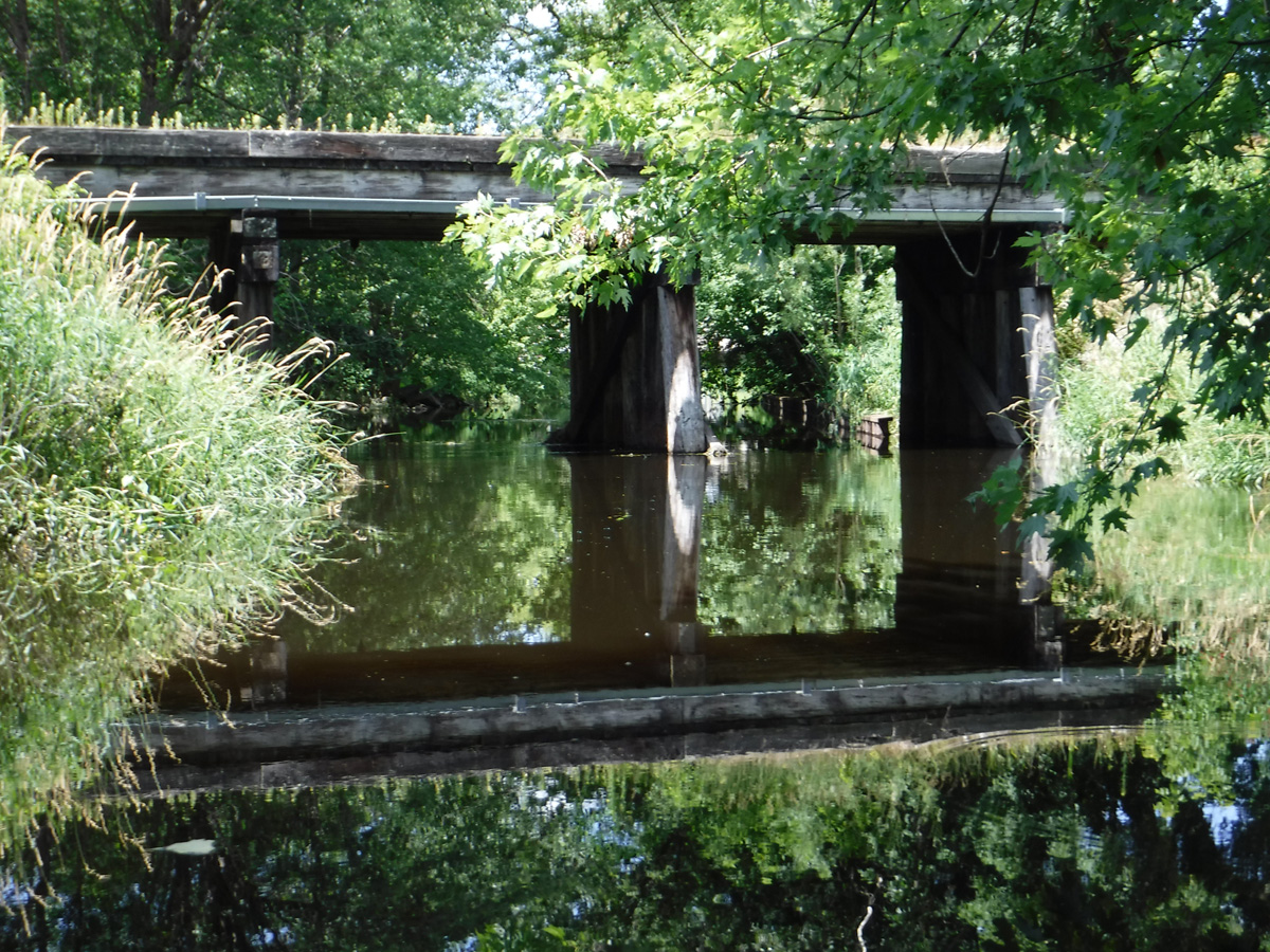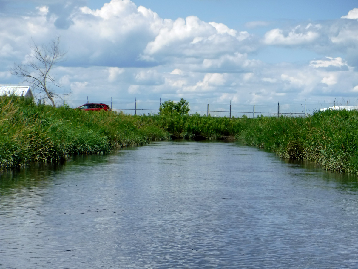 Wildlife: This is where we usually see dozens of turtles, but perhaps the high water was covering up their rock and log hangouts because we only saw two. We heard, but didn’t see, lots of frogs. Also, there were hundreds of dragonflies and the usual red-winged blackbirds and mallards and a muskrat. We saw one bird we could not identify – small tufted brownish bird with a yellow breast.