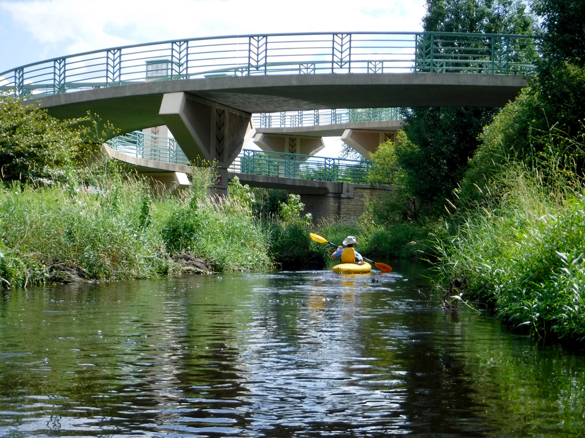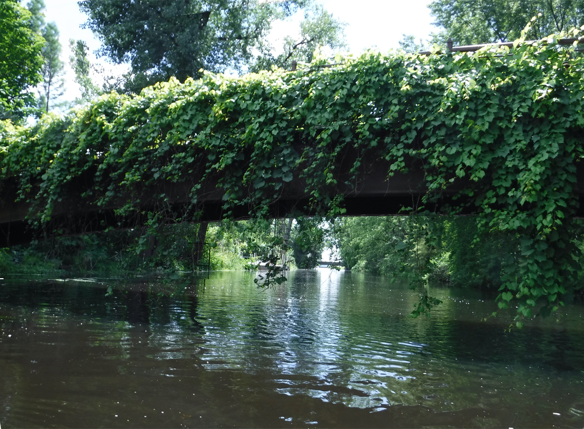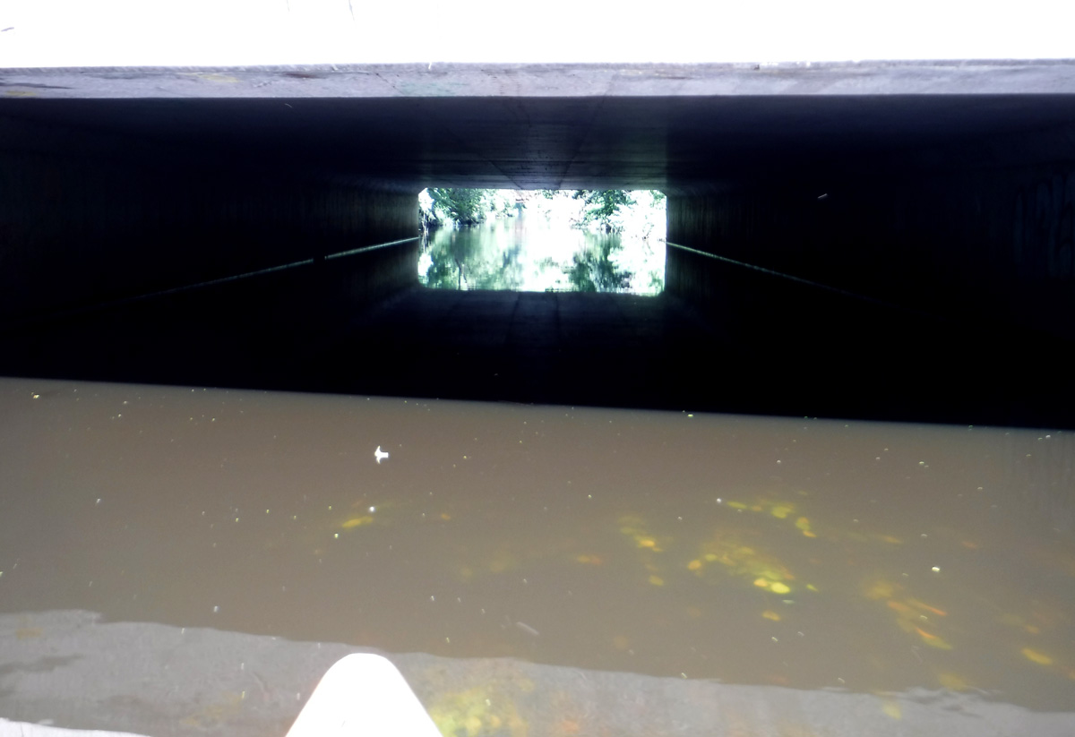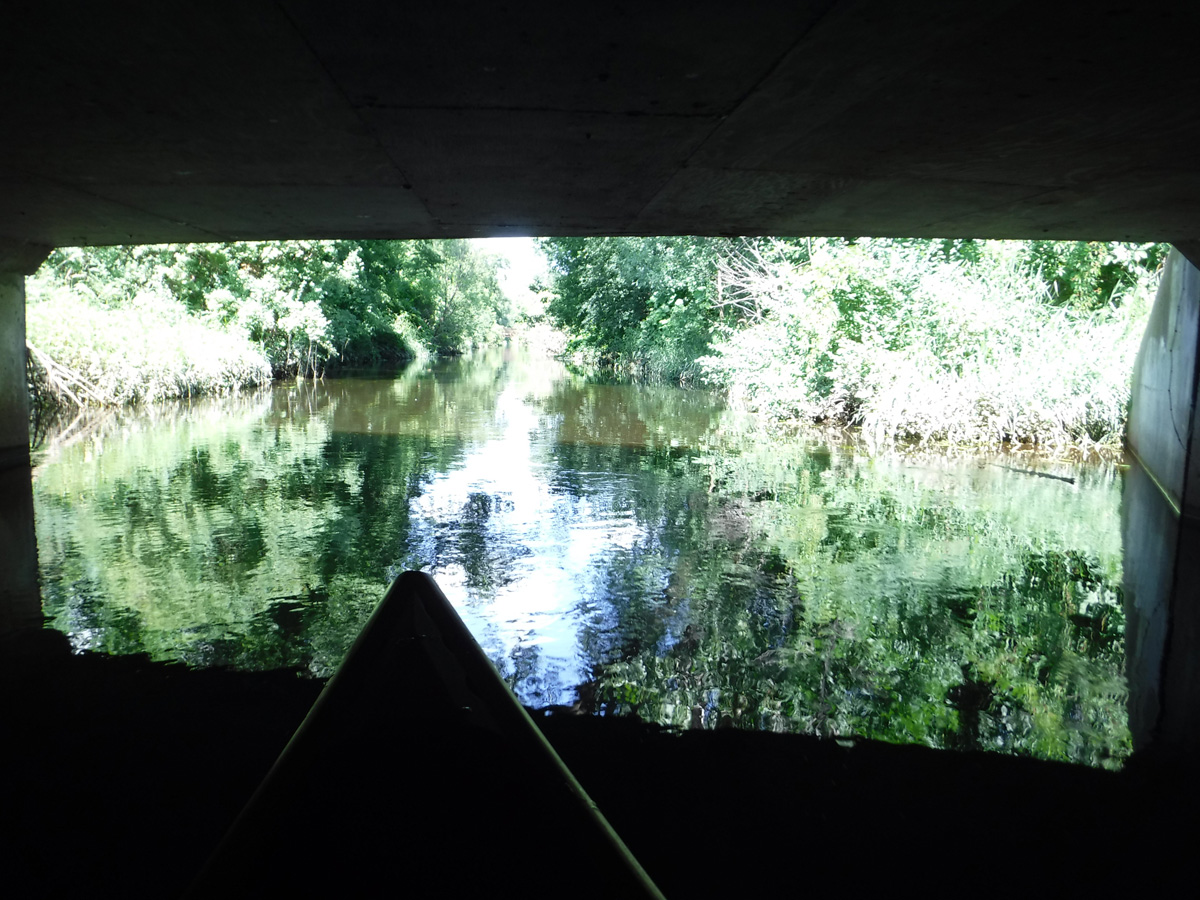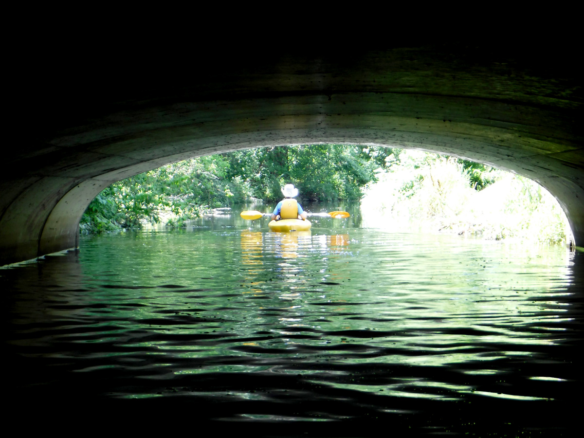 The high water level required some serious ducking to get under the railroad bridge by Olbrich and the low bridge over Milwaukee St. Clearance was adequate for the other bridges and tunnels. We knew the water was higher than we’ve ever paddled it by how much we had to fold ourselves over to get under the two lowest bridges.  We thought the creek would be lousy with paddlers, but except for a few other kayakers and a couple of stand-up paddleboarders, we had the creek to ourselves.