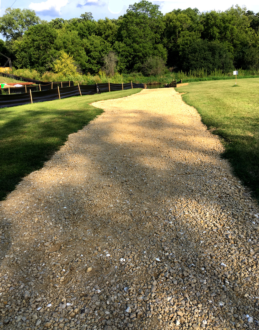 We have been curious about Nature at the Confluence (map, map2), where apparently a lot of Turtle Creek paddlers take out. We won’t be doing that this year, as it appears we would have to get out in the creek and haul the canoe up about 3 feet onto the vertical bank. According to a sign in the parking lot, recent floods have eroded the banks quite a bit. We walked around the grounds which are very nicely maintained and watched some young women wading and lounging in the creek.