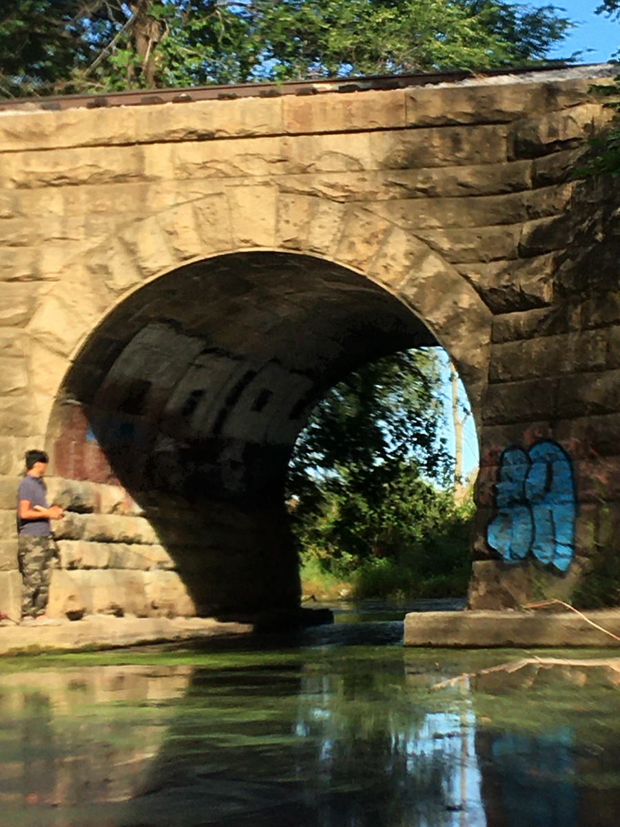 We also exchanged greetings with a man and his young son who were fishing from the Arboretum Drive bridge on the downstream side. When we came to the bridge on the return leg, we met them again on the upstream side. I told the boy I had seen his twin on the other side of the bridge earlier. That got a little smile from the boy and a big laugh from the father.