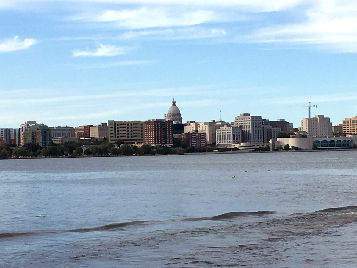 The many bridges on Wingra Creek are lovely, and there were a number of bridge fishermen, including one who had shed his clothes down to a Speedo and was in the process of swimming across the creek to free his line from the opposite bank. We weren’t actually aware of what he was doing until we found ourselves “clothes- lined.”