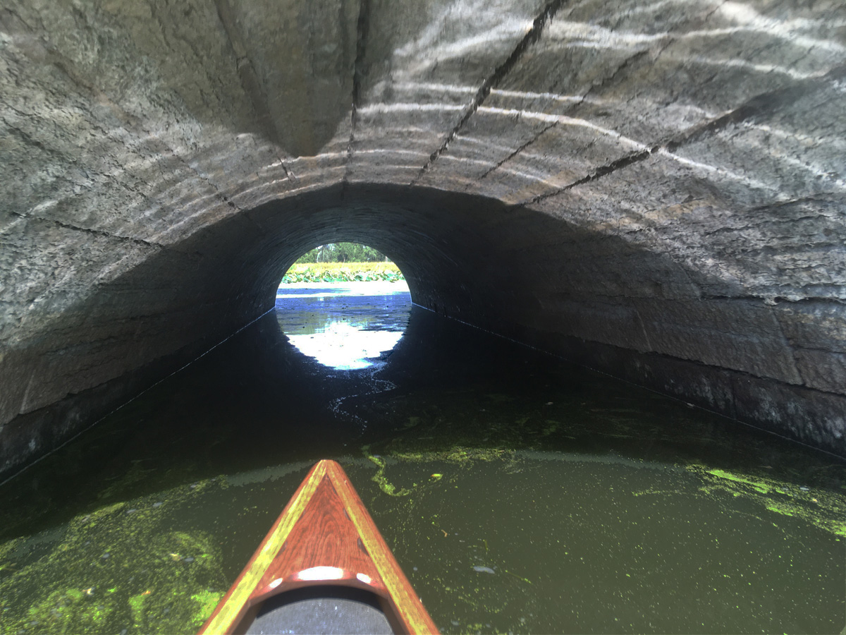 The launch is a bit of a walk from the parking lot. I had the idea to use the service road to bring the boat up but there was a barrier across it. So we unloaded in the parking lot ready to lug the canoe to the water. Funny enough, someone came along, jumped out of their car, moved the barrier out of their way and proceeded to drive up the service road; and we noticed the purpose of their trip was simply to use the bathroom facilities! So we definitely used the service road on the way out. The launch had a carpet of duckweed, but it was not slimy / no algae. A nice man gave us a shove into the water – a rare random act of kindness.