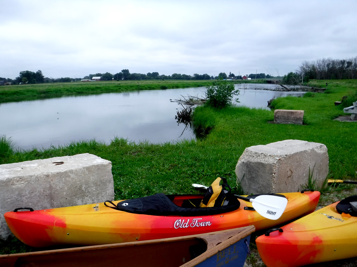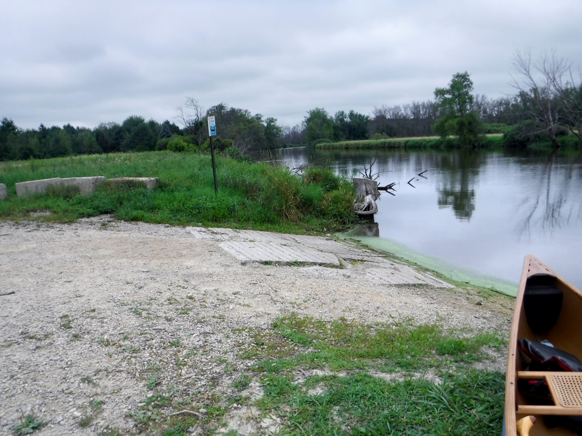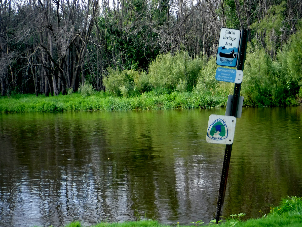Kaul Park boat launch is now known as “CW Canoe Landing” on Google maps. We use “Marsh Rd, Watertown” as a destination on the TomTom maps on our phones. Kaul Park is about 1 mile past Marsh Rd on CTH CW.  It has a spacious cul-de-sac, but there are “No Parking” signs everywhere now, and the only allowed parking seems to be along one side of the drive-in lane. There are no facilities and now no trees to hide behind.  Take-out is downstream at Kanow Park in Ixonia. It is a grass landing and can be a little muddy. This is a full park with playground, picnic tables, and pit toilet facilities. There is plenty of parking.