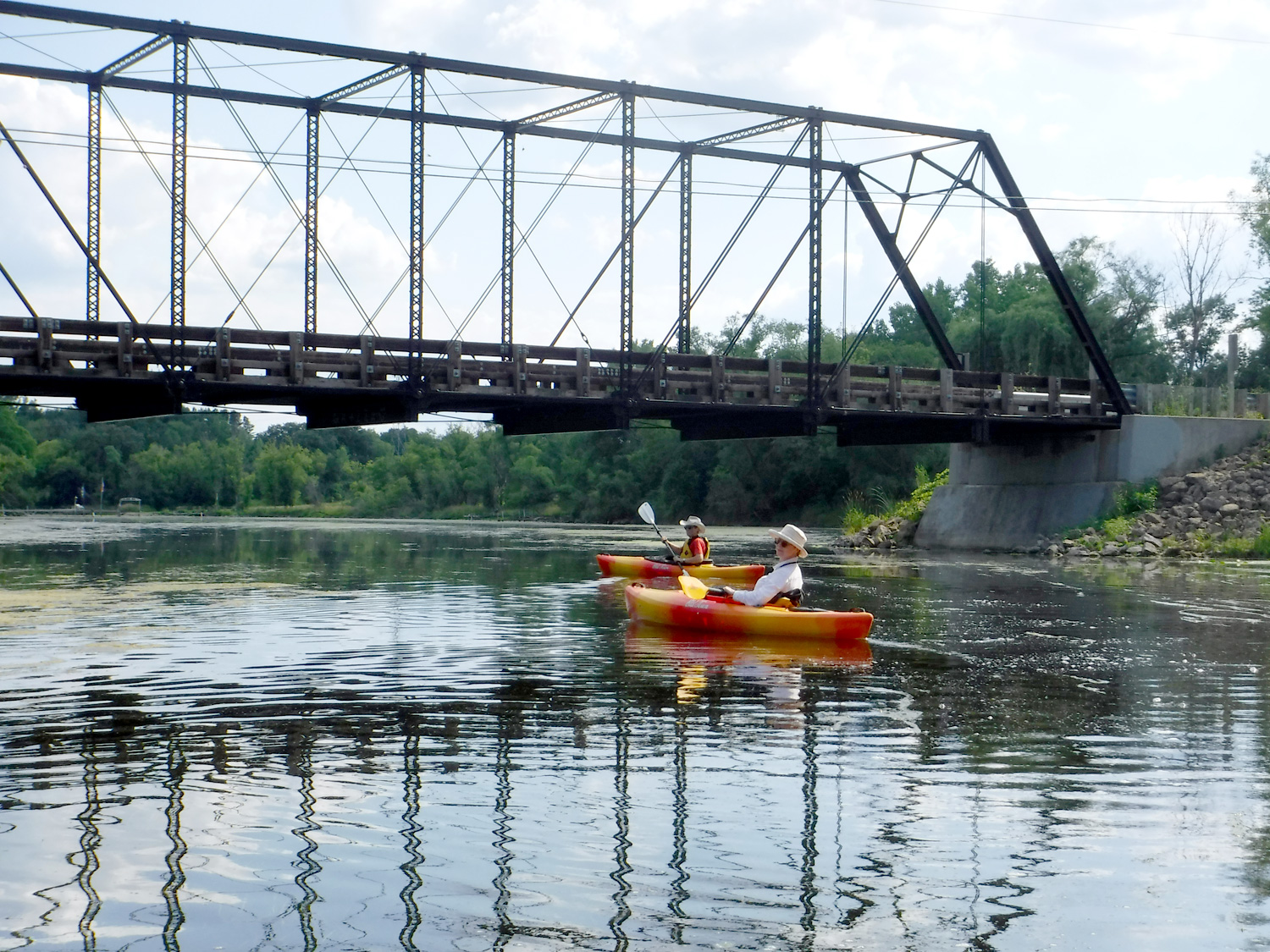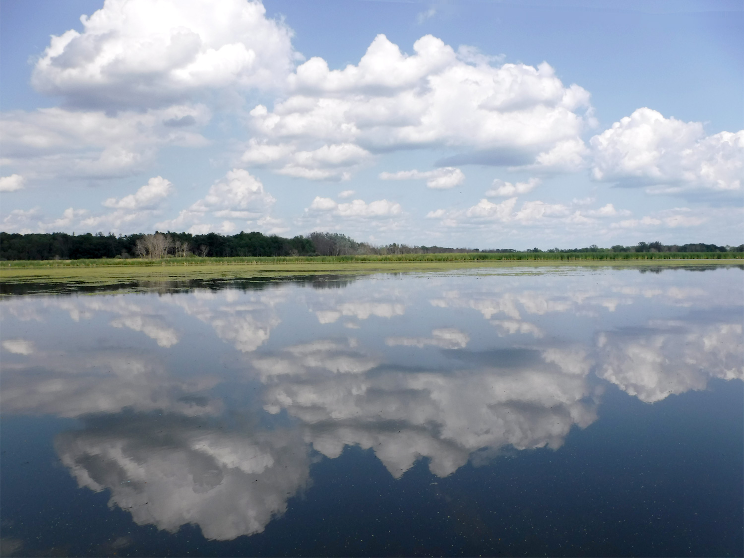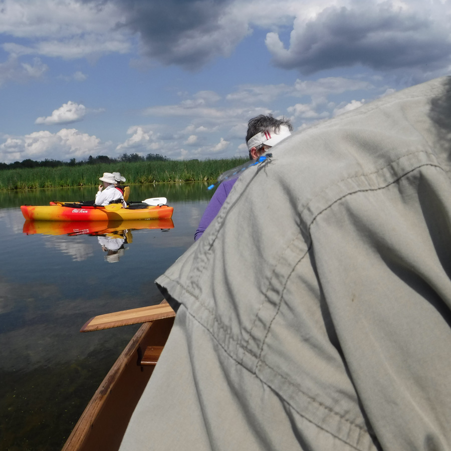 It was fun to see so many dragonflies around. The water was very quiet and reflective even thought here was a bit of a breeze. It was pretty uneventful except at the end of the paddle when a teenaged (we guess?) boy came toward us on a jet-ski. No problem at that point, but the river was full of weeds and we discussed that it was a really stupid inexperienced idea to get off the big lake and come into the weedy river. Fifteen minutes later he came up behind us going quite fast – we told him to cut it out, the river is 100% no wake and clearly marked. He said the weeds were getting caught in his motor (duh) so he “couldn’t help it” and pretty much went full throttle once out of earshot of our complaints.