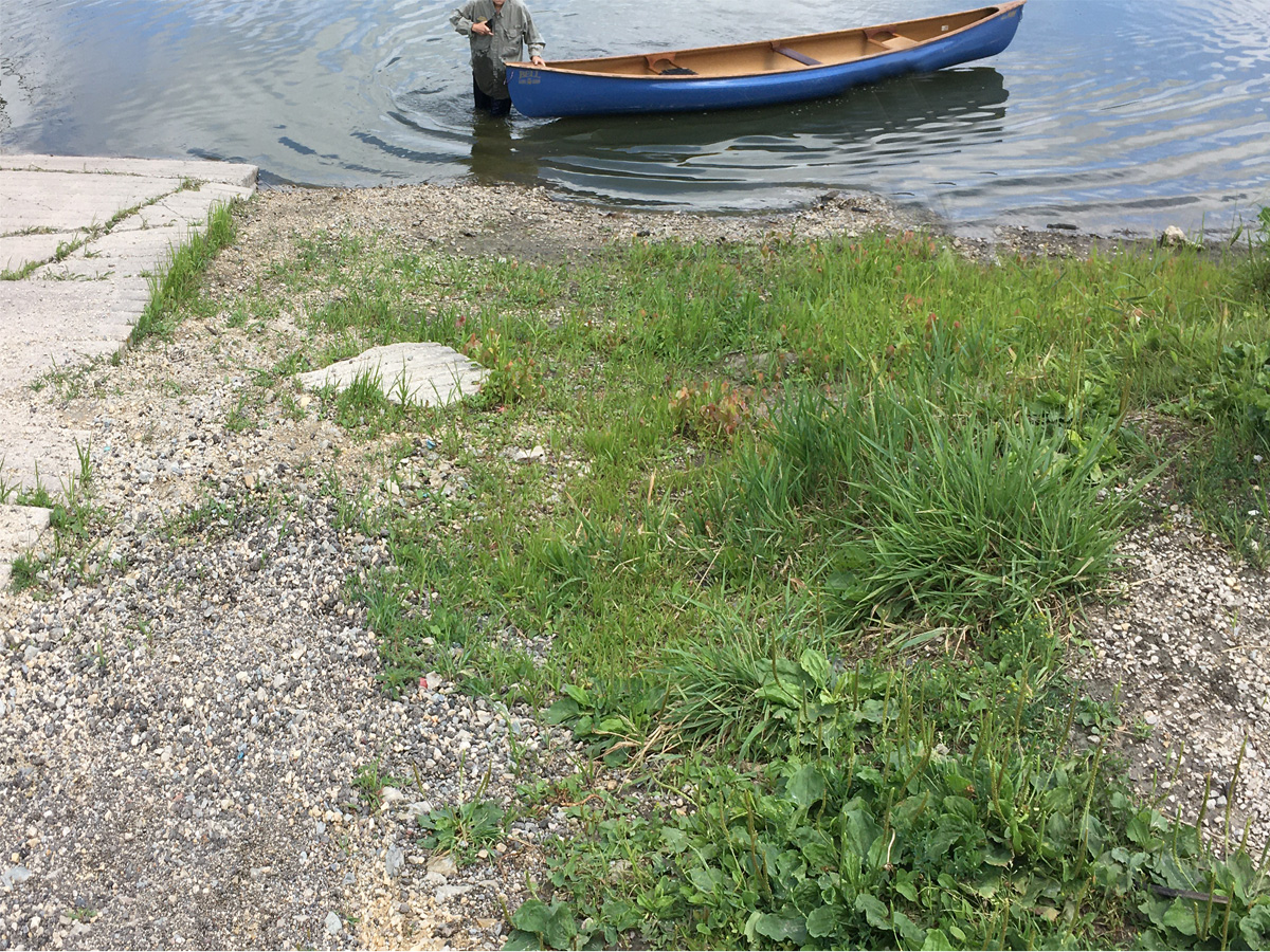 In preparing to launch, we followed our usual protocol. We carry the boat down to the water, then we fetch the paddles, pfds and waters. There was a bit of wind and since our boat is Kevlar (very light), I am usually overly cautious about holding onto it. Unfortunately, I overrode the voice in my head and convinced myself “it will be ok for a minute.” But the wind was just enough to catch the boat, and the ramp was just steep enough to allow the boat to move forward – our canoe launched without us!