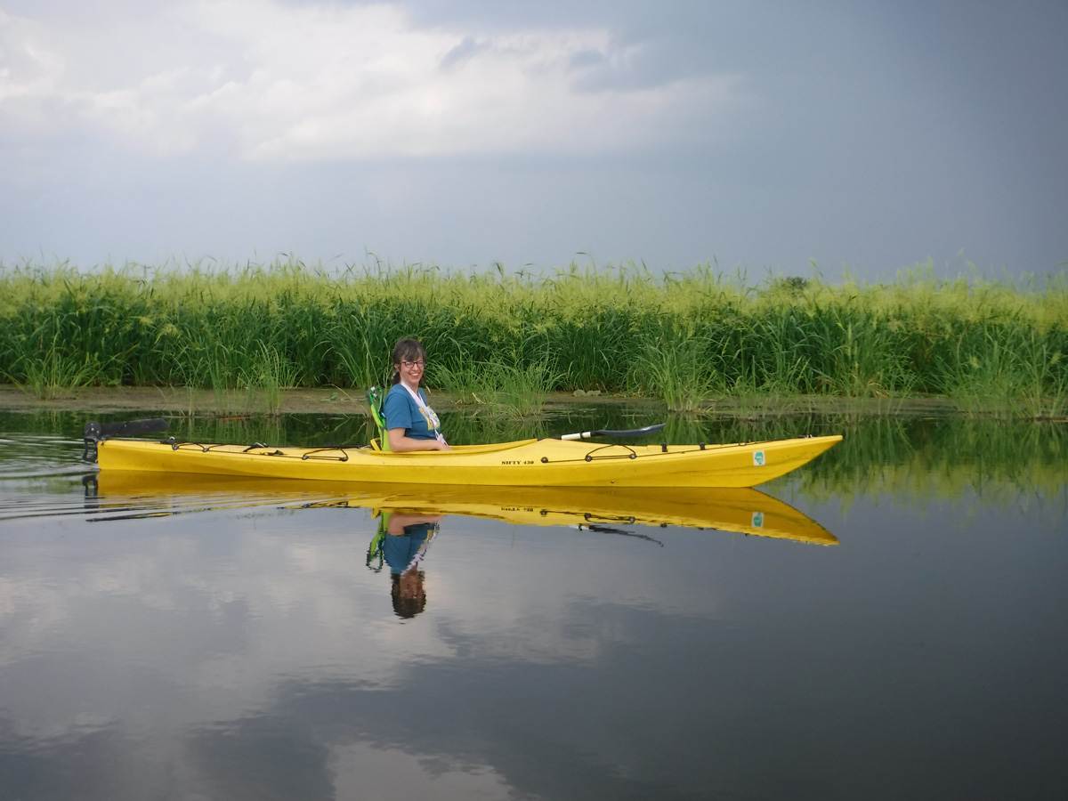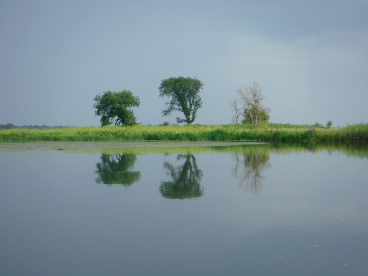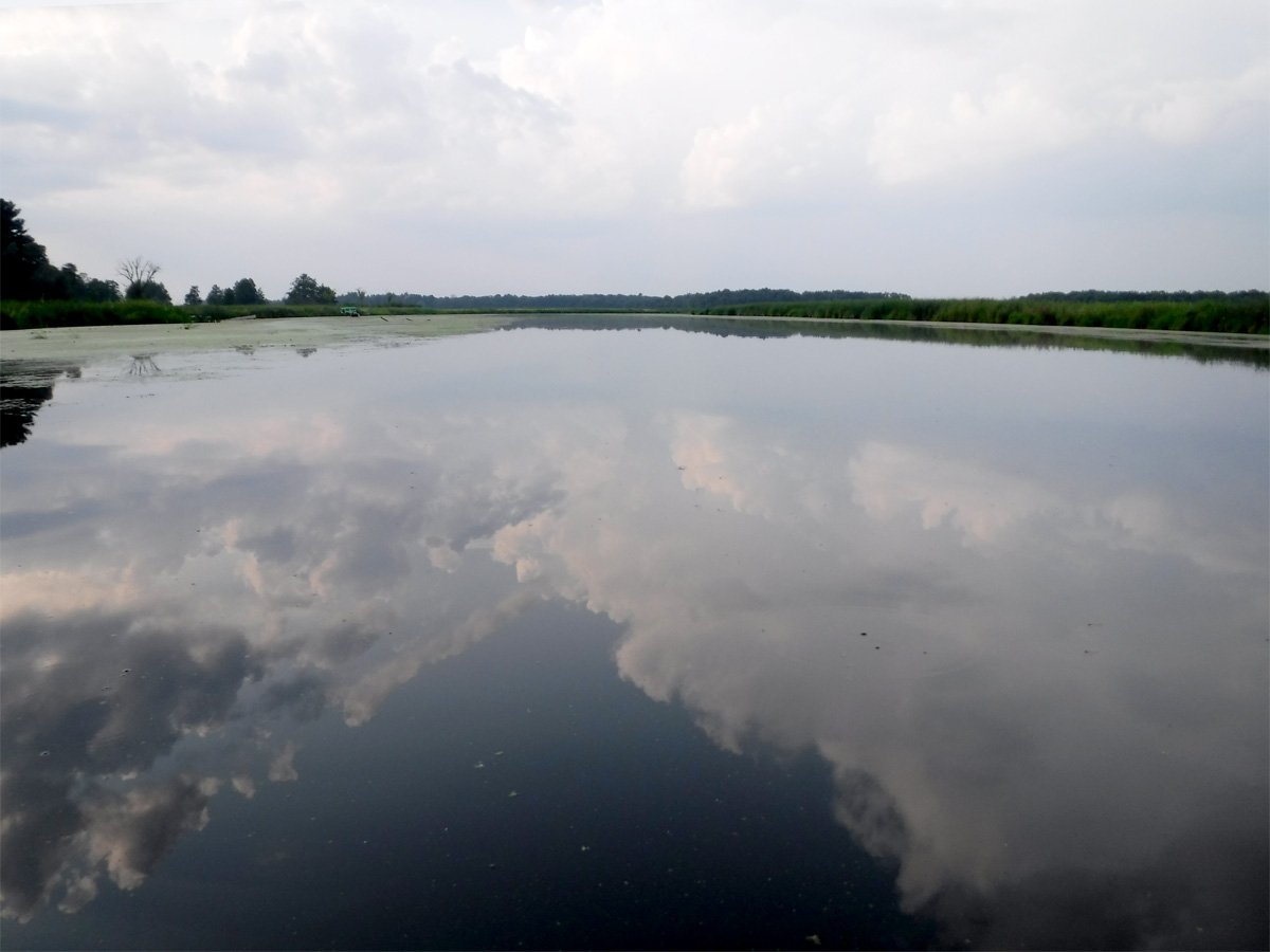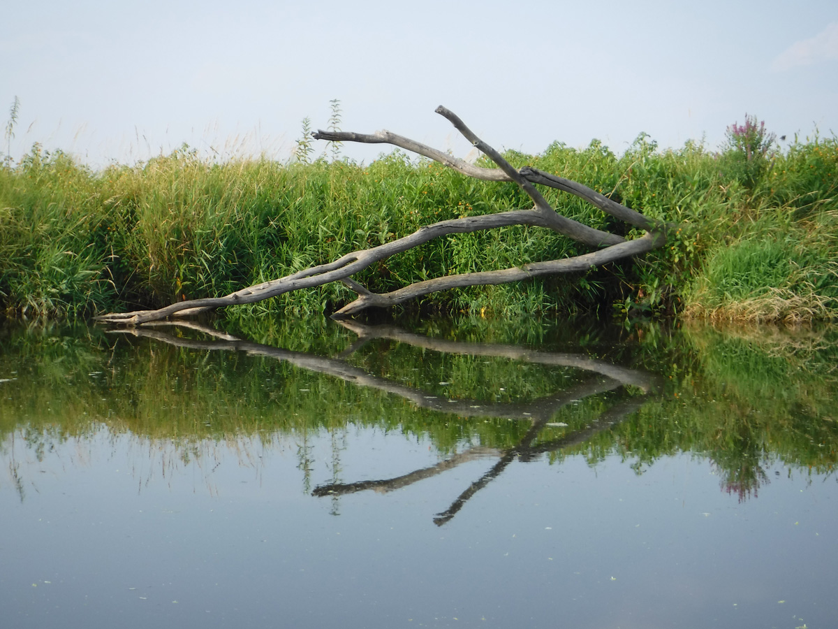 The water was calm and provided beautiful reflections. It was really beautiful for us quiet-water paddlers. There were shallow areas, but we “read the river” and never grounded.
